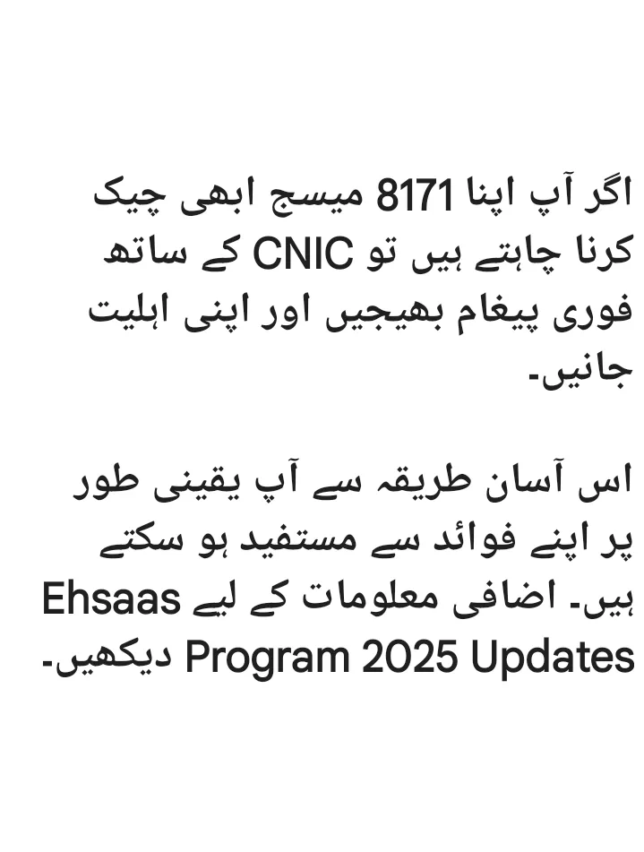 ؛8171کے ذریعے شناختی کارڈ چیک کرنا سب سے آسان اور محفوظ طریقہ ہے۔ آج کی اپڈیٹ کے مطابق، بہت سے نئے اور پرانے مستحق افراد کا ڈیٹا دوبارہ ویریفائی کیا جا رہا ہے، اس لیے صبر رکھیں اور درست طریقہ اپنائیں۔
