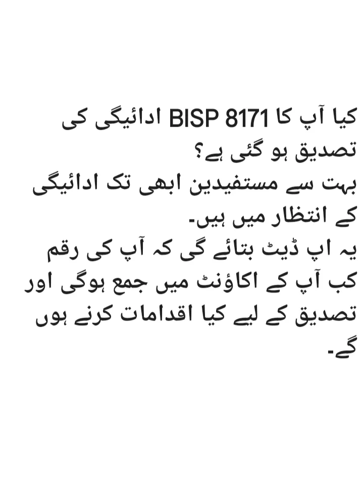 حالیہ BISP 8171 Pending Payment Update کے مطابق: